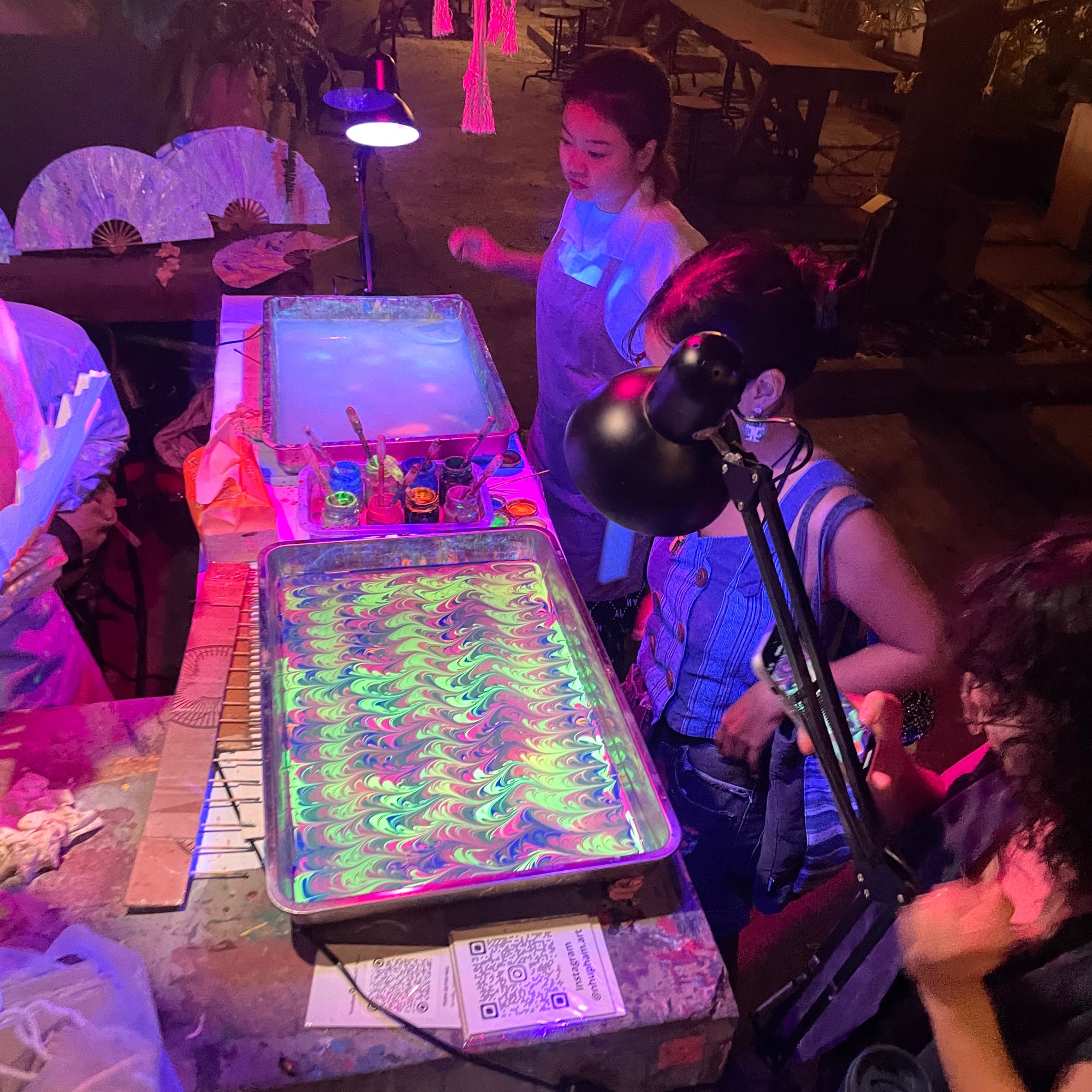 Have fun marbling cup coasters, paper fans, wooden dominoes, and more! These creative activities offer a wonderful opportunity to explore your artistic side and unwind while making unique, functional pieces. Whether you’re a beginner or a seasoned creator, there’s something for everyone to enjoy. Visit my social media for the latest local workshops, where you can meet fellow enthusiasts and learn new techniques, or send me a message to customize a workshop tailored specifically for your group event, ensuring a memorable time for all participants.